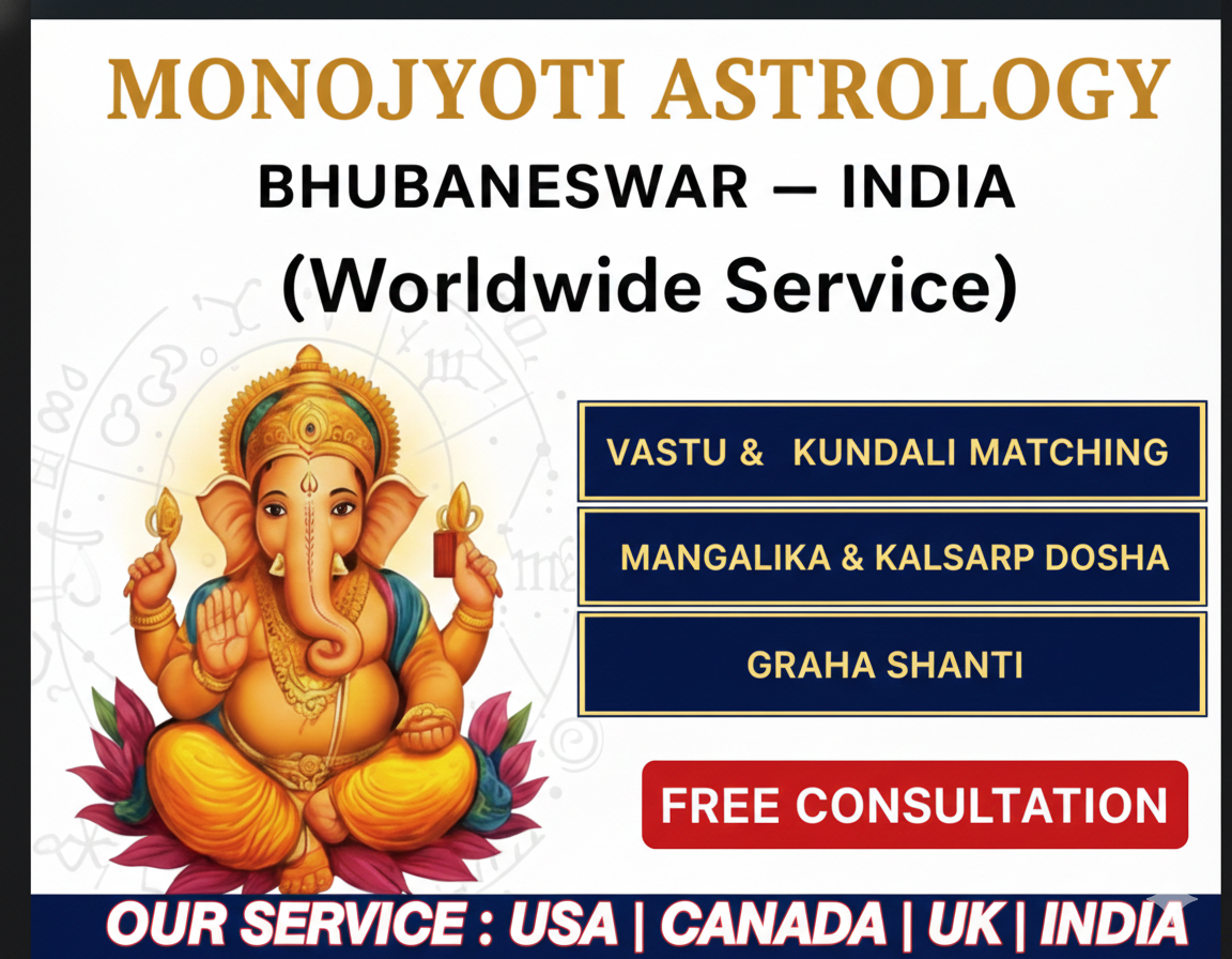 # About Us: Monojyoti Astrology### || OMM JAY MAHAKAL || At Monojyoti Astrology, we provide clear and accurate guidance for career, relationships, health, and finance. Our goal is to help you achieve peace and positive direction through Vedic Astrology. ### Expert GuidancePandit Shailendra Shastri Ji offers personalized guidance by analyzing your birth chart (Kundli). By studying planetary positions and Dashas, he identifies the root cause of your problems. We help you in making life-defining decisions through Horoscope analysis, Numerology, and Vastu. ### Global PresenceWe provide services worldwide, including India, USA, UK, and Canada. Distance is no barrier; our guidance reaches you instantly. We believe that right decisions at the right time can truly transform your life. ------------------------------------------ Our Official Policy: "Guidance, Not Business" ------------------------------------------ Monojyoti Astrology stands for 'Seva' (Service). Our policy is designed to respect the seeker: * No Compulsory Fees & No Hidden Charges.* No Advance Payment & No Paid Remedies. All consultations are free-will based. A donation is accepted only if the client willingly wishes to give from their heart; otherwise, not a single rupee is required. Our aim is to keep astrology a pure service, driven by honesty and humanity. Monojyoti Astrology — Guidance, Not Business. ------------------------------------------ M/s MONOJYOTI ASTROLOGYLewis Road, Bhubaneswar, Odisha.